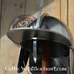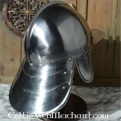 Productdetails: Max. hoofdomtrek: 62 cm / Materiaal: Koolstofstaal / Dikte: 1.6 mm / Inleg: Leren inleg / Gewicht: 2.7 kg / Gebaseerd op een historisch origineel: Ja /