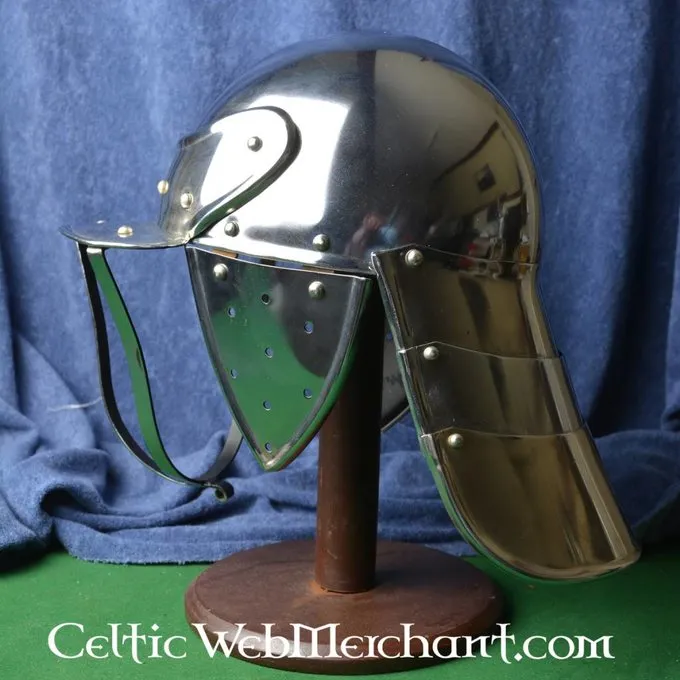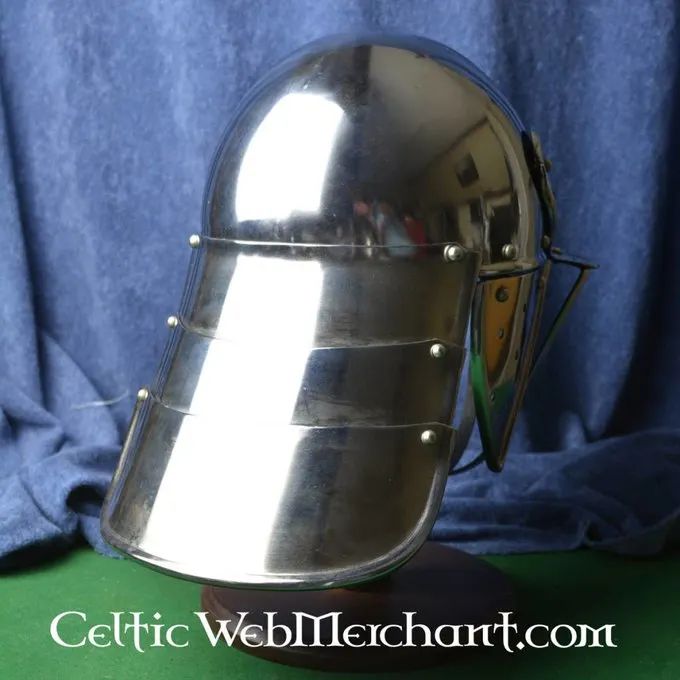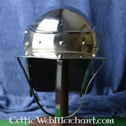 Productdetails: Max. hoofdomtrek: 63 cm / Materiaal: Koolstofstaal / Dikte: 1.3 mm / Inleg: Leren inleg / Gebaseerd op een historisch origineel: Ja /
