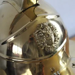 Deze helm is gemaakt van messing en weegt 4,9 kg. Hij is geschikt voor een maximale hoofdomtrek tot 62 cm.