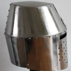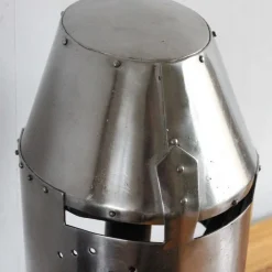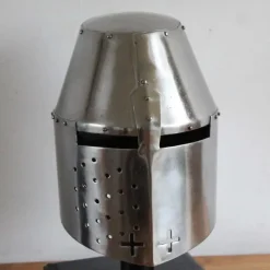 Deze replica is gemaakt naar de 14de eeuwse helm van sir Richard Pembridge, het origineel is te bezichtigen in the Royal Scottish Museum in Edinburgh (Schotland). De grote helm of pothelm ontstond in de 12de eeuw in verband met de kruistochten en bleef tot in de 14de eeuw in gebruik door zowel ridders als zware infanterie in heel Europa. In deze eeuwen veranderde hij van een simpel ontwerp met alleen kleine spleetjes voor ogen en mond naar een afgeronde helm.
