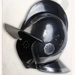 Deze replica is gemaakt naar de 14de eeuwse helm van sir Richard Pembridge, het origineel is te bezichtigen in the Royal Scottish Museum in Edinburgh (Schotland). De grote helm of pothelm ontstond in de 12de eeuw in verband met de kruistochten en bleef tot in de 14de eeuw in gebruik door zowel ridders als zware infanterie in heel Europa. In deze eeuwen veranderde hij van een simpel ontwerp met alleen kleine spleetjes voor ogen en mond naar een afgeronde helm.