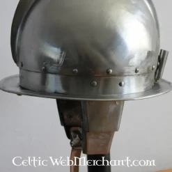 Productdetails: Lengte (voor naar achter): 23 cm / Breedte (oor tot oor): 19.5 cm / Max. hoofdomtrek: 63 cm / Materiaal: Koolstofstaal / Dikte: 2 mm / Inleg: Leren inleg / Gewicht: 3 kg / Gebaseerd op een historisch origineel: Ja /