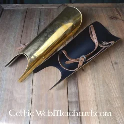 Dit messingen paar scheenbeschermers zijn gemaakt naar diverse opgravingen van klassiek Grieks plaatpantser. Dergelijke beenbeschermers werden met name in de oudheid door bijvoorbeeld hoplieten en triarii gedragen.