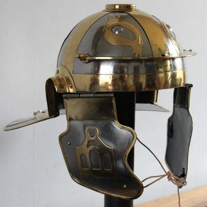 De wangbeschermers van het origineel zijn verloren gegaan en daarom is de reproductie voorzien met wangbeschermers van een exemplaar dat in Worms is gevonden. Hij is gemaakt van staal en afgewerkt met messingen versieringen. De helm is geschikt voor een hoofdomtrek tot 60 cm en wordt inclusief katoenen kap voor draagcomfort geleverd.