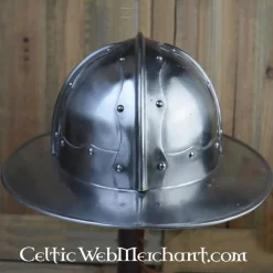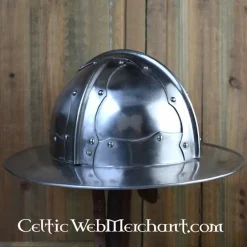 Deze middeleeuwse ketelhoed is een replica van een Italiaans origineel uit 1460 n.Chr. Ketelhoeden (chapel de Fer) zoals deze werden vanaf het eind van de 14de eeuw overal in Europa gedragen. Dit type helm was zowel populair bij de gewone soldaten, als bij de aristocratie. De rand beschermde het hoofd tegen projectielen van bovenaf. Daar dankt dit type helm zijn Duitse naam (Sturmhaube) aan. Deze helm is gemaakt van 1,6 mm dik staal. Hij is voorzien van een verstelbare leren inleg.