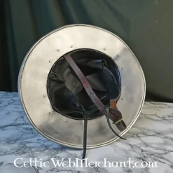 Deze ketelhoed is gemaakt naar verschillende middeleeuwse manuscripten waaronder de Maciejowski bijbel. Helmen zoals deze werden zowel door de cavalerie als door de infanteristen gedragen. Ze waren vooral erg populair omdat ze een goede bescherming tegen projectielen boden.
