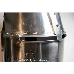Deze helm is gemaakt naar een 13de eeuwse grote helm die werd gedragen door Sir Richard Pembridge. Helmen zoals deze werden in geheel Europa gedragen.