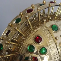 De helm is gemaakt van messing en ingelegd geslepen glas. Hij heeft een nekplaat en twee wangkleppen en is gevoerd met rood leer. De helm weegt ca. 4 kg en heeft een gestileerde helmkam. De helm is geschikt voor een maximale hoofdomtrek van 60 cm.