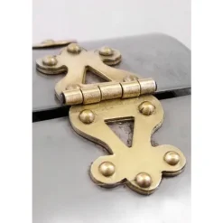 Details: Materiaal: roestvrij staal, messing, leer / Staaldikte: 1,2 mm / Maten: M en L, maatvoering zie maattabel / Gebaseerd op een historisch origineel