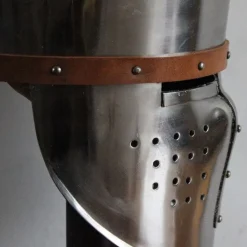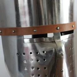 Deze reconstructie komt ongeveer uit het jaar 1180 en is gevechtsklaar. Hij is vast te maken met een leren kinriem en heeft een leren inleg voor draagcomfort.