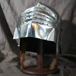 Dit is een replica van een Noord-Italiaanse sallet die rond 1490 werd gedragen. Dergelijke modellen stonden ook wel bekend als ?blaasbalg-sallet? en werden in geheel Europa gedragen.