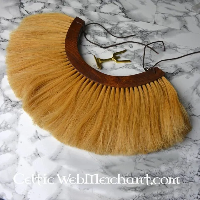 Witte helmkam voor Romeinse helmen. Hij kan met een helmkamstandaard bevestigd worden. De helmkam is gemaakt van natuurlijk paardenhaar. Gewicht 350 gram.