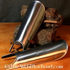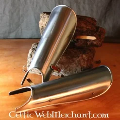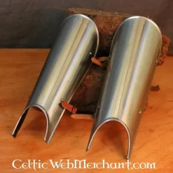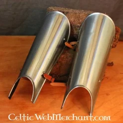 Deze scheenbeschermers zijn 42 cm lang, 22 cm breed en wegen ca 1,7 kg. Ze zijn gemaakt van 2 mm dik staal.