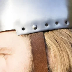 Deze secret is gemaakt naar historische originelen uit de dertiende tot de zeventiende eeuw. In de middeleeuwen droeg men de secret onder een Grote Helm en is daardoor een soort geheime helm. Tijdens 1 op 1 gevechten deed men de Grote Helm af en dan droeg men de secret. Later, in de zeventiende eeuw, droegen edelmannen de secret onder hun hoed als zij op hun hoofd toch extra bescherming nodig hadden. Secrets werden soms zelfs in hoeden genaaid. Deze helm is een geweldige aanwinst voor je Middeleeuwse, Renaissance of Gouden Eeuw kostuum. Je kan hem onder een andere helm dragen, onder een hoed, mantel, cape etc. Met een kinriem kan je de helm vastmaken onder je kin. Deze helm is 1 mm dik en geschikt voor LARP battles, kostuums en Cosplay.