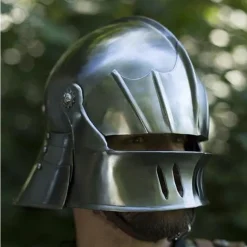 Deze sallet is gebaseerd op 16de eeuwse originelen. Dat de sallet populair was, blijkt uit dat dit type helm voor meer dan 100 jaar in gebruik is geweest! Vaak werden dit soort helmen in massa geproduceerd. Waarbij vaak in korte tijd veel van deze helmen moesten worden gemaakt. De nekbeschermer bood de drager een geweldige bescherming tegen projectielen van bovenaf. Het vizier bood een goed gezichtsveld, in combinatie met een optimale bescherming aan het gezicht.
