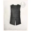 Deze hoge kwaliteit leren armbeschermer beschermt de arm van de hand tot de bovenarmen. Hij is gemaakt van overlappende leren stukken die allemaal een handafgewerkte zoom hebben, om beschadiging en vervorming te voorkomen. Het stuk bij de hand is gemaakt van suedeleer, net als de koorden bij de pols en de ellebogen waarmee je de bracer vastknoopt. Het zwarte suede materiaal van de koorden en de hand contrasteert mooi met het gladde zwarte oppervlak waar de rest van de bracer uit bestaat. Bovenop is een wit leren stuk bevestigd dat de structuur en het uiterlijk van een stuk been suggereert.