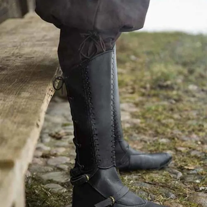 Scheenbeschermers inclusief leren veters, dus op maat verstelbaar. De buitenkant is van leer, de binnenkant van velours leer. Het zijn scheenbeschermers van Epic Armoury. Zowel in zwart als bruin verkrijgbaar en voor vele re-enact en larp doeleinden bruikbaar. Hij weegt ca. 900 g en in de maten S, M en L verkrijgbaar. Van maat S is de lengte 24 cm en de breedte 30 cm. Van maat M is de lengte 29 cm en de breedte 32 cm. Van maat L is de lengte 34 cm en de breedte ook 34 cm.