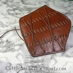 Deze armbeschermers zijn geschikt voor LARP-evenementen, zijn van mooi, sterk bruin, kwaliteitsleer. Ze zijn erg geschikt om een middeleeuwse schildknaap mee uit te beelden en zijn van het merk Palnatoke. Ze worden per paar geleverd en zijn in de maten S, M en L verkrijgbaar. De binnenkant is van veloursleder en ze worden gesloten met een bijgeleverd koord. Hij weegt ca. 410 gram Bij maat S is de lengte 22 cm en de breedte is 20 cm. Bij maat M resp.26 cm en 23 cm. Bij maat L is de lengte 31 cm en de breedte 28 cm.