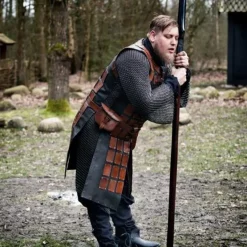 Dit LARP pantser is gemaakt van een hoge kwaliteit natuurlijk geverfd leer en is gedecoreerd met messingen nagels, in de stijl van de historische brigandine. Het pantser is geïnspireerd op de leren uitrusting van soldaten uit de veertiende tot de zestiende eeuw. Dit pantser is geschikt voor historische LARP, re-enactment, maar kan ook voor Game of Thrones Cosplay en vele andere LARP en Cosplay settings worden gedragen. Deze lange brigandine is vrij licht in gewicht en duurzaam. Hij beschermt de torso, rug, bovenbenen en knieën. De brigandine bestaat uit een leren pantser voorzien van vierkante leren plaatjes. Je kan de brigandine vastmaken met de leren riemen en koorden.