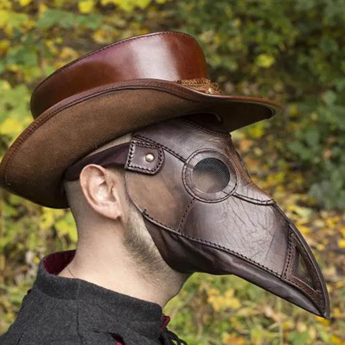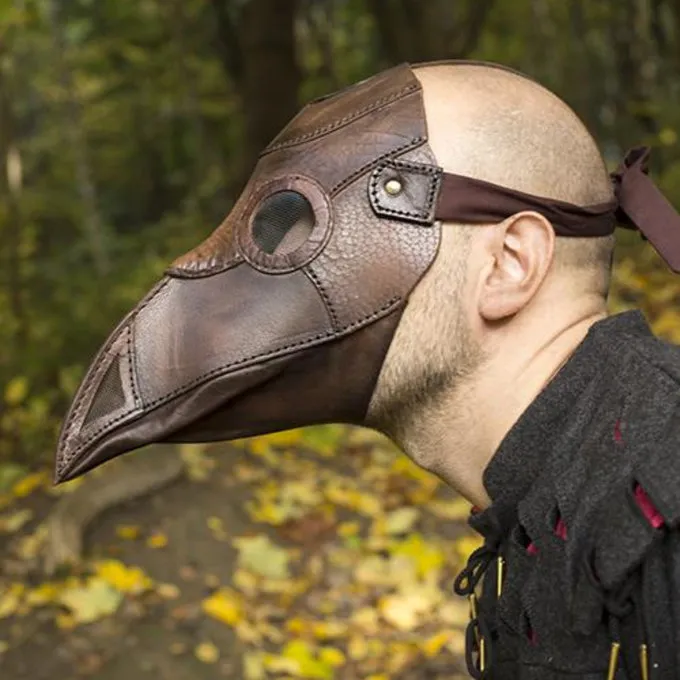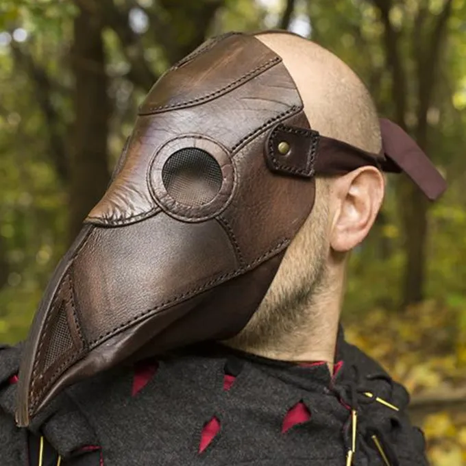 Dit doodenge leren masker is perfect voor het LARPen en re-enacten van een middeleeuwse pestdokter. Ook voor Halloween en andere kostuums met een griezelig tintje is dit een perfect accessoire. Het masker heeft aan de achterkant een verstelbare leren riem en is dus geschikt voor ieder hoofd. Hij heeft gaas bij de ogen en de neus dus als je het masker draagt kan je gewoon goed blijven kijken en ademhalen.