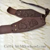 Deze riem bestaat uit een wijde leren band met vier riemen en prachtige handgestikte details. Aan de zijkanten zijn twee suedeleren beschermers bevestigd die de heupen beschermen. Aan de voorkant zijn ook nog stoffen riemen bevestigd, om het geheel af te maken. Voor een angstaanjagende look!