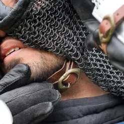 Om uw maliënonderdelen of plaatpantser goed op hun plaats te houden, kunt u het best leren veters aan uw wambuis bevestigen en deze aan het pantser / maliën vastmaken. Het pantser blijft dan tijdens het vechten beter op zijn plaats zitten.