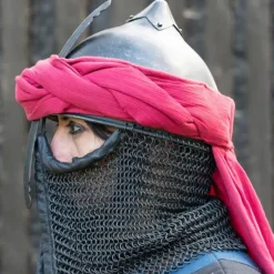 Deze tulband kan je vastmaken met veters aan de achterkant. Je kan hem direct om je hoofd vastmaken, of om een helm of ander hoofddeksel. Een perfect accessoire voor LARP van oosterse personages of Cosplay van Game of Thrones (personages uit Dorne), Aladdin, Kingdom of Heaven, etc.