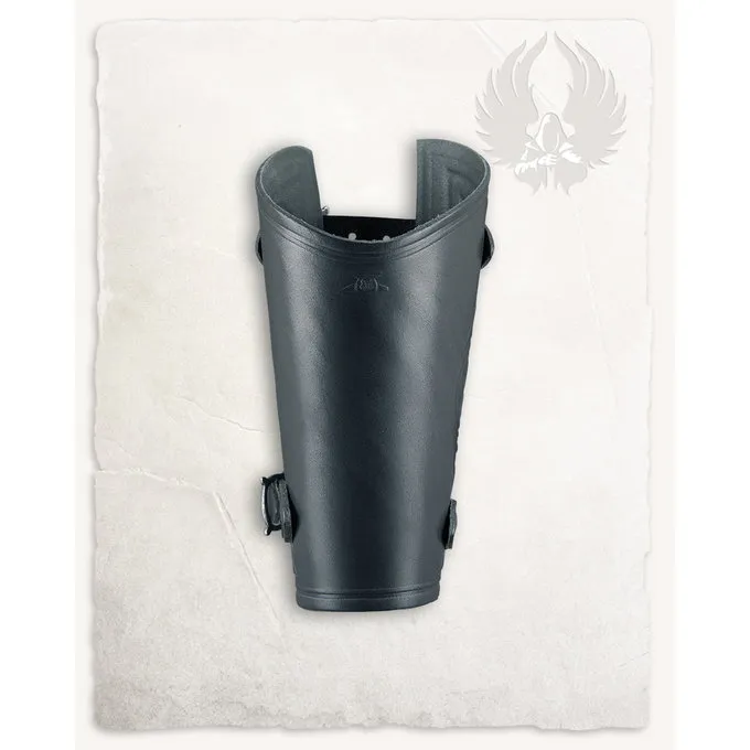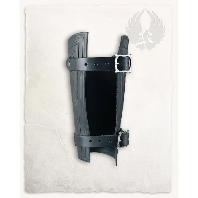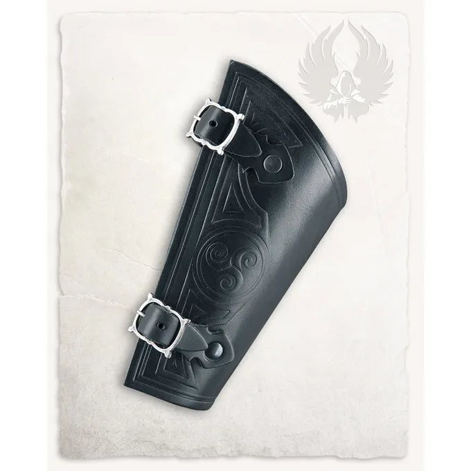 Deze armbeschermer is geschikt voor reenactment, cosplay en LARP. Hij is gemaakt van leer. De armbeschermer is versierd met keltische patronen en knopen. De binnenkant is uitgesneden zodat de drager makkelijker zijn arm kan buigen. De armbeschermer kan gesloten worden met de riemgespen die aan de buitenkant zitten.