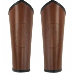 Details: Materiaal: leer / Kleur: bruin / Lengte: 23 cm / Breedte: 17 cm / In maat te verstellen met riempjes / Geleverd per paar