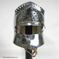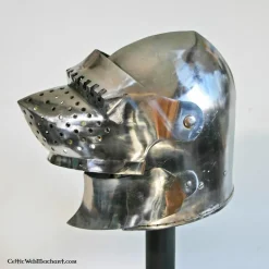 Deze bascinet bestaat uit drie delen: de helm, het vizier en de kinbeschermer. De vizier en kinbeschermer zijn beweegbaar. De helm heeft een textielen inleg voor draagcomfort. Hij is gemaakt van 2 mm dik staal en is verkrijgbaar in maat L (voor een hoofdomtrek van 63-64 cm).