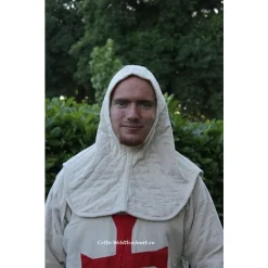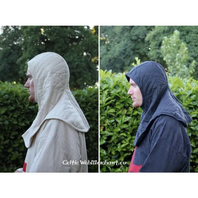 Gevoerde helmkap, biedt bescherming aan het hoofd en aan de nek. Ideaal voor onder de middeleeuwse en laat-middeleeuwse helm.