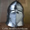 Deze prachtige burgonet is een replica van de vele 17de eeuwse cavaleriehelmen die tegenwoordig in musea liggen. Deze helmen werden door cavaleristen gedragen die rond die tijd vaak gewapend met degen en radslotpistolen de vijand tegemoet reden. Of, er hard voor wegreden. Als cavalerist kan dat! Deze burgonet is voorzien van wangkleppen die gehoorgaatjes bevatten. Hij heeft een nek en wenkbrauwbeschermer voor bescherming tegen neerkomende projectielen.