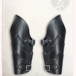 Deze armbeschermers zijn perfect voor cosplay en LARP. Deze armbeschermers zijn gemaakt van leer. Ze bestaan uit drie geklonken segmenten, die elkaar overlappen. Ze zijn versierd met decoratieve asymmetrische lijnen, die lijken op drakenschubben. Dit maakt de armbeschermers perfect voor een elf of ranger geïnspireerd karakter. De armbeschermers kunnen gesloten worden met stevige leren banden met gespen.