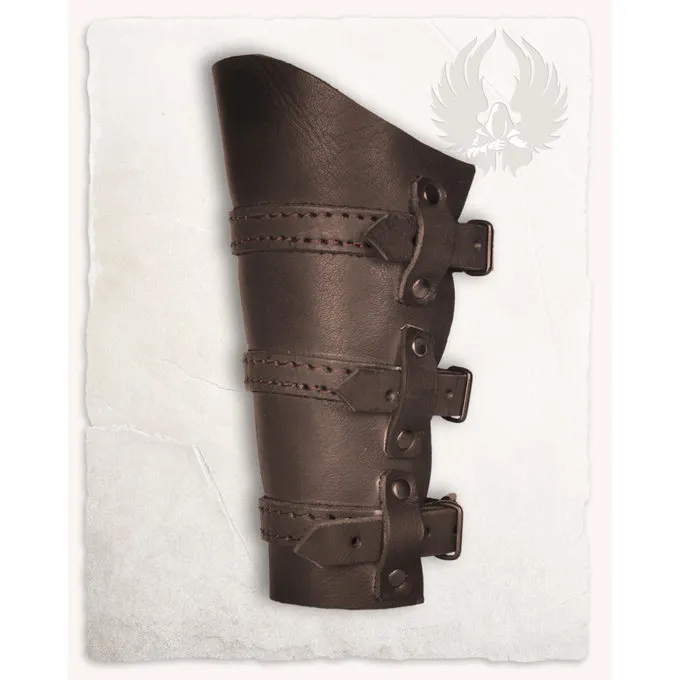 Deze armbeschermers zijn geschikt voor reenactment, cosplay en LARP. Deze armbeschermers zijn gemaakt van bovenleer. Ze hebben een redelijk simpel design, maar dit maakt ze wel ideaal voor veel kostuums. Ze zitten zeer comfortabel en kunnen gesloten worden met drie riemgespen.