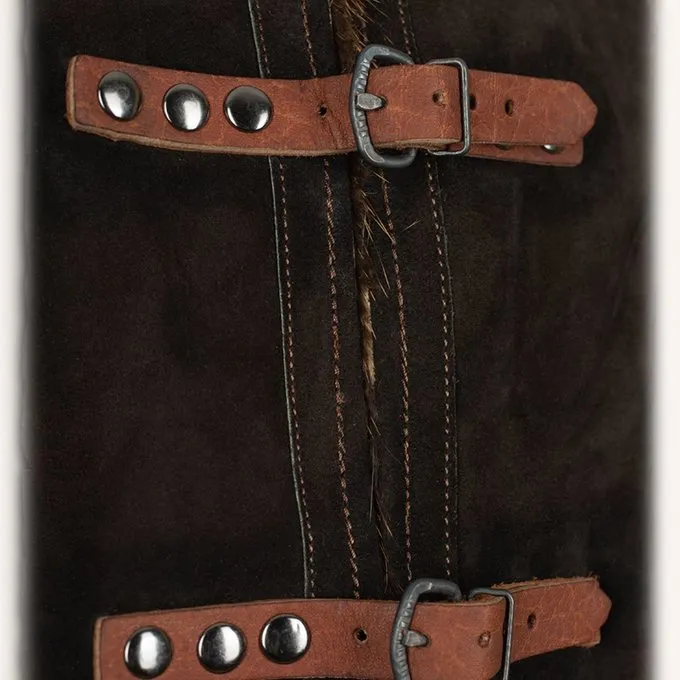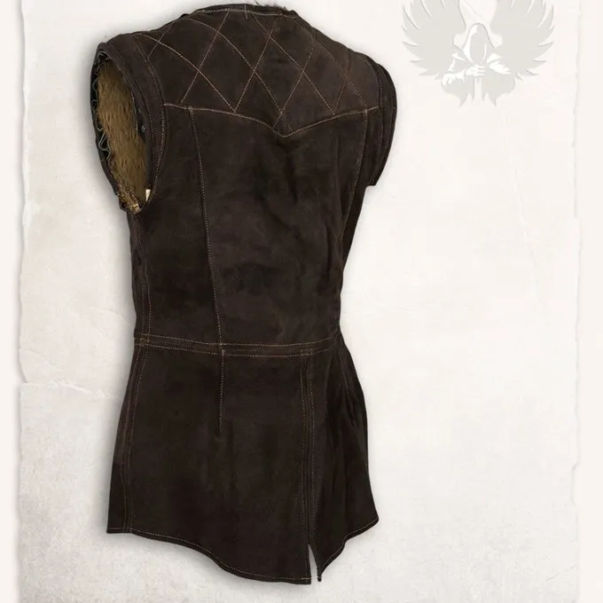 Deze prachtige brigandine is perfect voor fantasy festivals, Cosplay, reenactment en LARP. Dit soort brigandines zijn te zien in middeleeuwse manuscripten. Deze unieke brigandine is handgemaakt van hoge kwaliteit natuurlijke materialen. De buitenkant is gemaakt van suedeleer, en de binnenkant van zacht nutria bont. Hierdoor is hij warm voor de winter. Ideaal voor nobele personages of personages uit koude gebieden. Het bont komt van biologische fokkers in Duitsland en van de jacht. Er is geen bont gebruikt uit de bioindustrie.