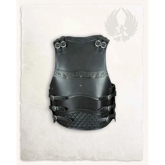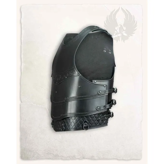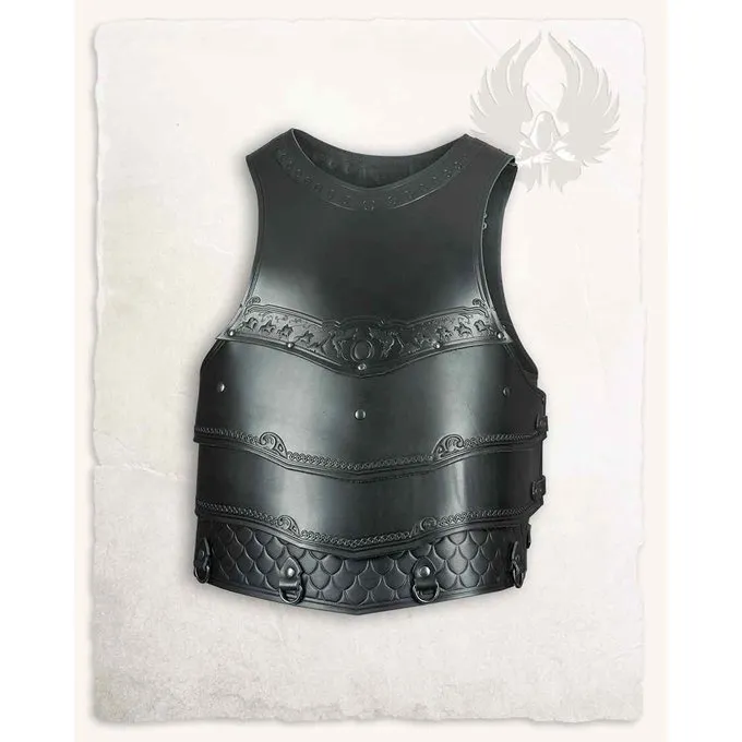 Dit pantser is geschikt voor reenactment, cosplay en LARP. Het pantser is gemaakt van bovenleer. Het pantser kan gesloten worden met de daarvoor zes bedoelde riemgespen. Dit geeft het pantser een perfecte pasvorm die de drager veel bewegingsvrijheid geeft. Dit pantser is zeer gedetailleerd, zo staan er afgebeelde ridders op en sierstrepen. Dit maakte het een ware eyecatcher!