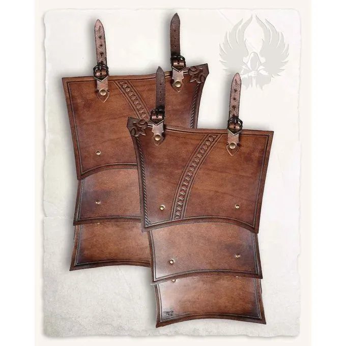 Deze tassets zijn geschikt voor reenactment, LARP en cosplay. Dit product is gemaakt van hoogwaardige kwaliteit bovenleer. De tassets kunnen vastgemaakt worden door de twee riemgespen. Door het design heeft de drager veel ruimte voor beweging. Daarnaast hebben de tassets een uniek design dat ze zeker een eyecatcher maakt!