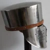 Deze kruisvaarders helm is een replica van verschillende Middeleeuwse helmen die tussen de 11de en 12de eeuw werden gedragen. Dit waren de helmen die de ridderorders zoals de Tempelies droegen. Later werd vanuit dit type helm de mandhelm ontwikkeld. Men beschilderde deze helm vaak voor extra intimidatie en natuurlijk tegen roest.