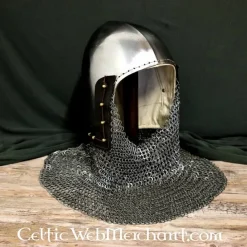 Deze bascinet is gebaseerd op originelen die rond het eind van de 14de en begin van de 15de eeuw werden gedragen. In tegenstelling tot zijn voorgangers wijst de punt (bovenkant) van dit type bascinet licht naar achteren toe. Deze bascinet is voorzien van een maliënkraag. Het maliën is gemaakt van verenstaal platte ringen, ronde klinknagels en is gewoven in de 1 op 4 constructie. De helm is beschikbaar in maat M en L en is voorzien van een textielen inleg. Deze helm is ontwikkeld met het oog op re-enactmentgevechten.