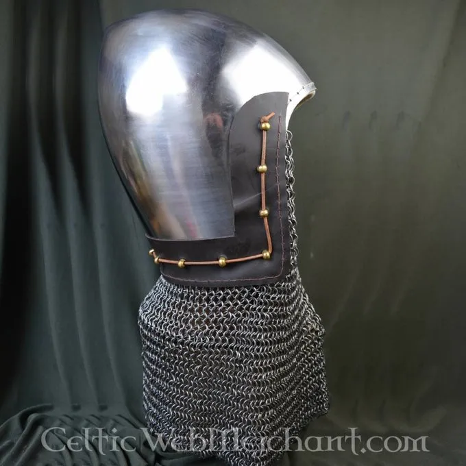 Details: Materiaal: koolstofstaal 2 mm / Maliënkraag: ronde ringen verenstaal geknepen / Inleg: textiel / Maat: M (64 cm) L( 68 cm) / Gewicht: 4,7 kg / Gebaseerd op Historisch origineel /