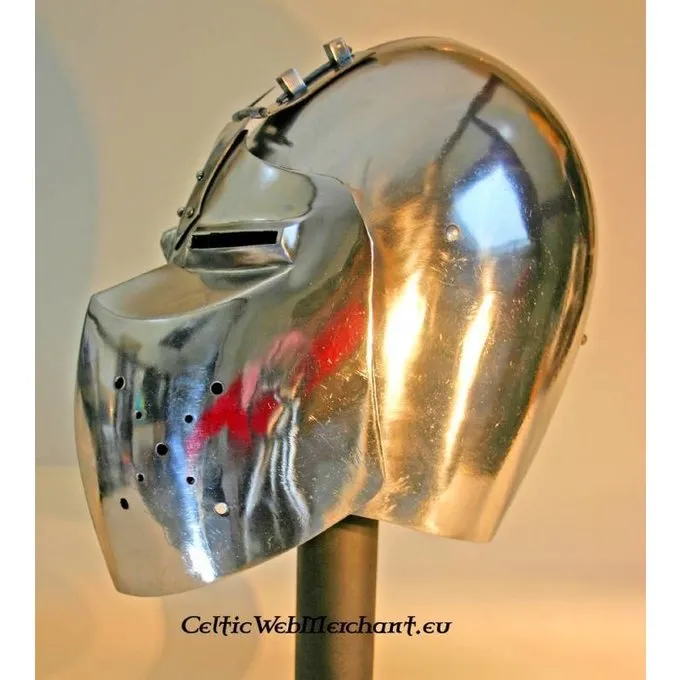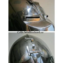 Het vizier van de bascinet biedt een optimale bescherming tijdens gevechten en kan indien gewenst worden afgenomen. De helm is gemaakt van 2 mm dik staal en weegt ongeveer 3 kg. Hij is verkrijgbaar in de maat S (maximale hoofdomtrek 58 cm) en M( maximale hoofdomtrek 61 cm).