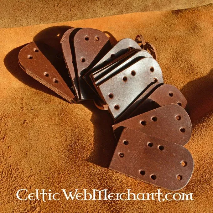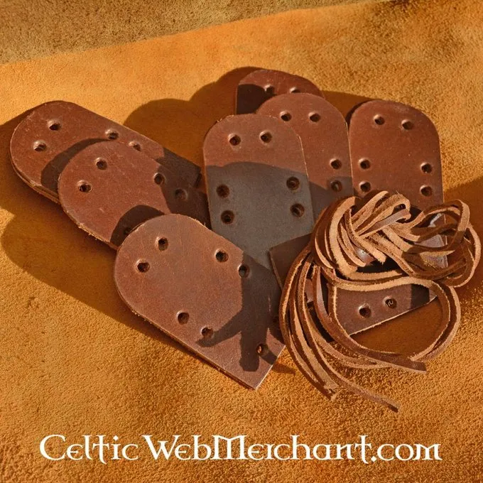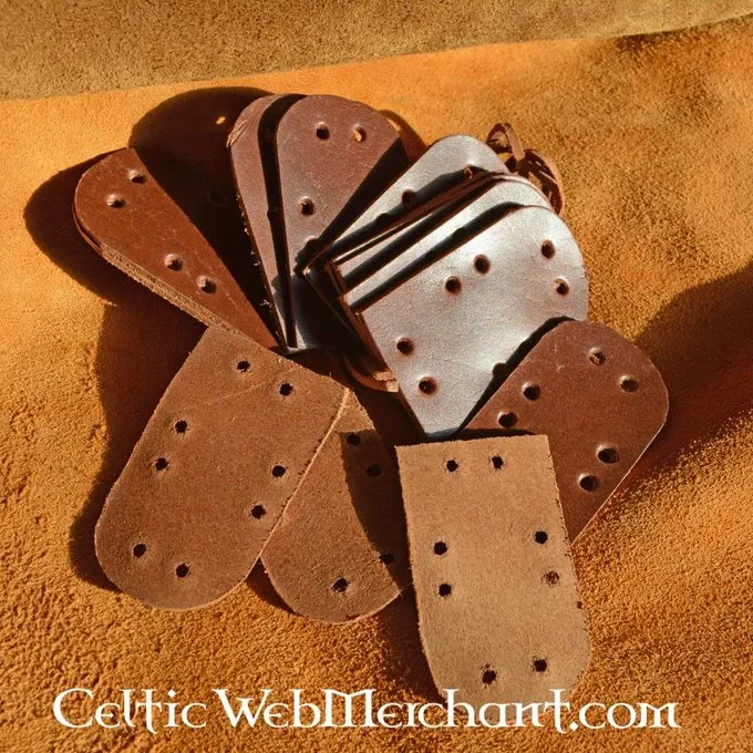 Om uw maliënonderdelen of plaatpantser goed op hun plaats te houden, kunt u het best leren veters aan uw wambuis bevestigen en deze aan het pantser / maliën vastmaken. Het pantser blijft dan tijdens het vechten beter op zijn plaats zitten.
